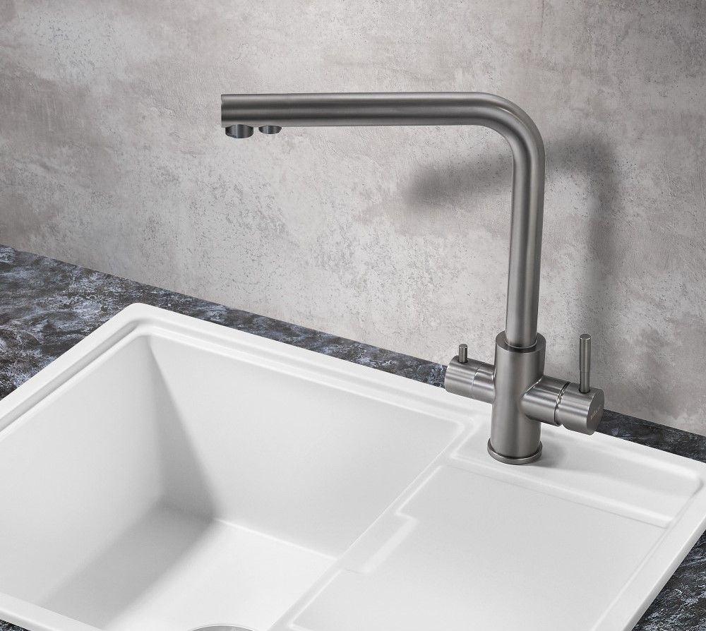 Смеситель для кухни Milacio Ultra MCU.553.GM под фильтр с краном для питьевой воды воронёная сталь купить