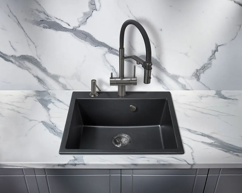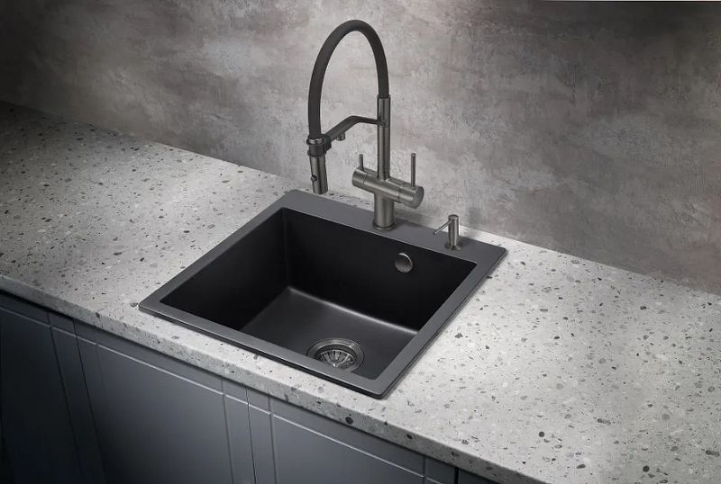 Смеситель для кухонной мойки Milacio Ultra MCU.557.GM из латуни, с возможностью подключения фильтра - стильное и высокофункциональное решение, которое выгодно подчеркнет все достоинства вашей кухни. Модель выполнена в благородном цвете вороненая (оружейная) сталь и имеет изящный изогнутый кран с гибким изливом, благодаря чему станет яркой, привлекающей внимание деталью на кухне и никого не оставит равнодушным.