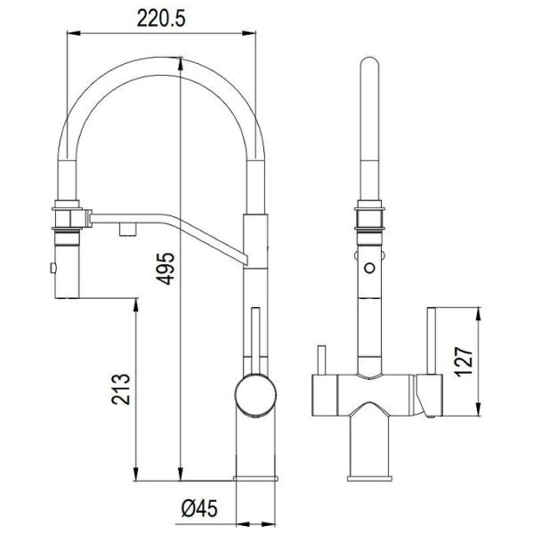 Смеситель для кухни Milacio Ultra MCU.557.SS с подключением к фильтру и гибким изливом нержавеющая сталь