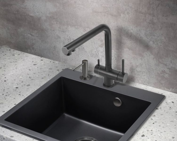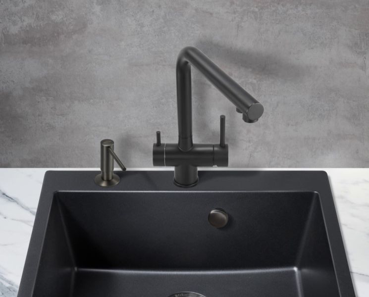 Смеситель для кухни Milacio Ultra MCU.558.TB под фильтр с краном для питьевой воды Total Black