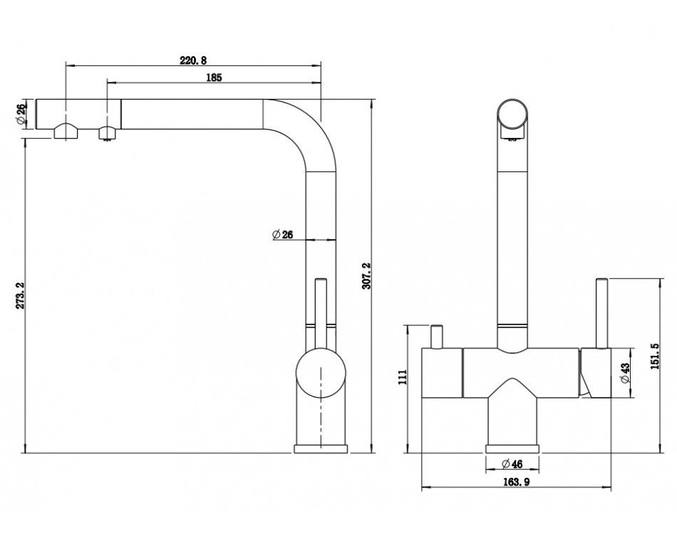 Смеситель для кухни Milacio Ultra MCU.559.SS под фильтр с краном для питьевой воды нержавеющая сталь