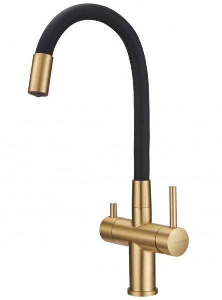 Смеситель для кухни Milacio Ultra MCU.560.GDB под фильтр с краном для питьевой воды и гибким изливом золото/чёрный купить