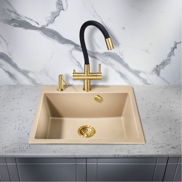 Смеситель для кухни Milacio Ultra MCU.560.GDB под фильтр с краном для питьевой воды и гибким изливом золото/чёрный