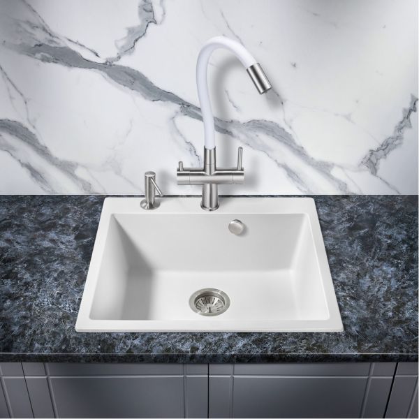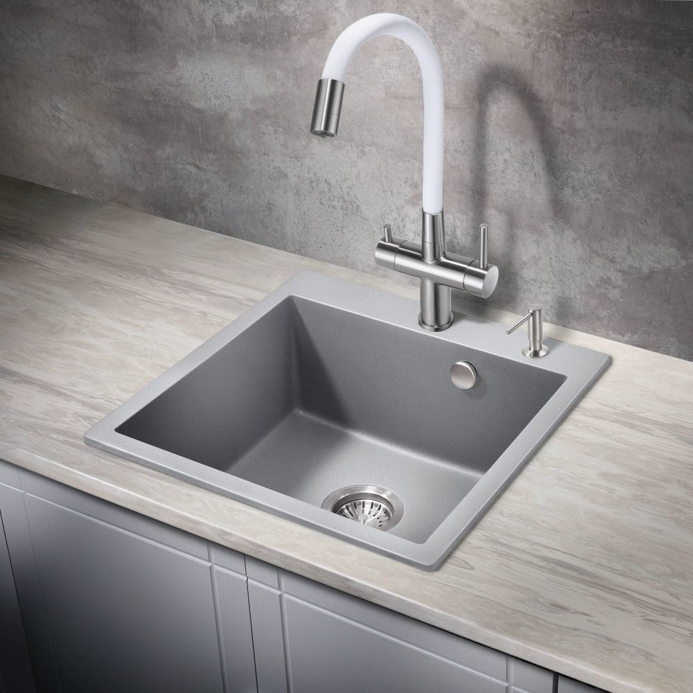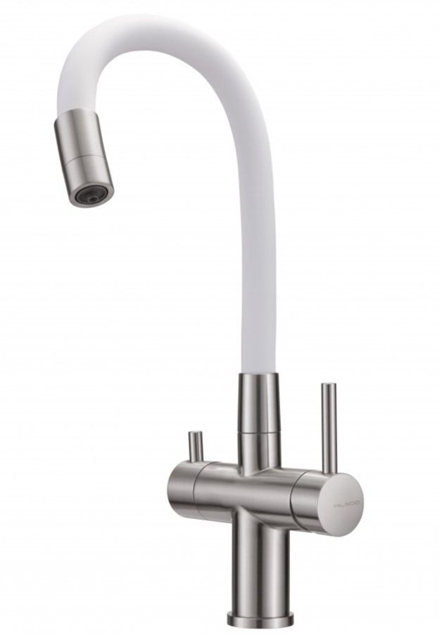 Смеситель для кухни Milacio Ultra MCU.560.SSW под фильтр с краном для питьевой воды и гибким изливом нержавеющая сталь/белый купить