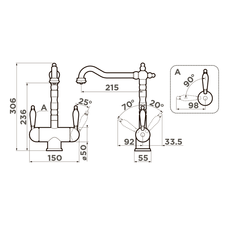 - Классический дизайн и удобство использования благодаря высокому изливу.