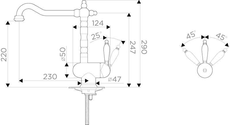 • Классический дизайн и удобство использования, благодаря высокому изливу; • Цвет: 011.Античная Бронза; • Высококачественная латунь сохранит воду чистой и здоровой; • Аэратор произведен из пластика, благодаря чему на нем никогда не появится известкового налета и ржавчины; • Коробка внутри проложена поролоном, который обеспечит сохранность изделия при транспортировке; • Полный набор креплений, соединительных шлангов, подробная инструкция и гарантийный талон в комплекте;