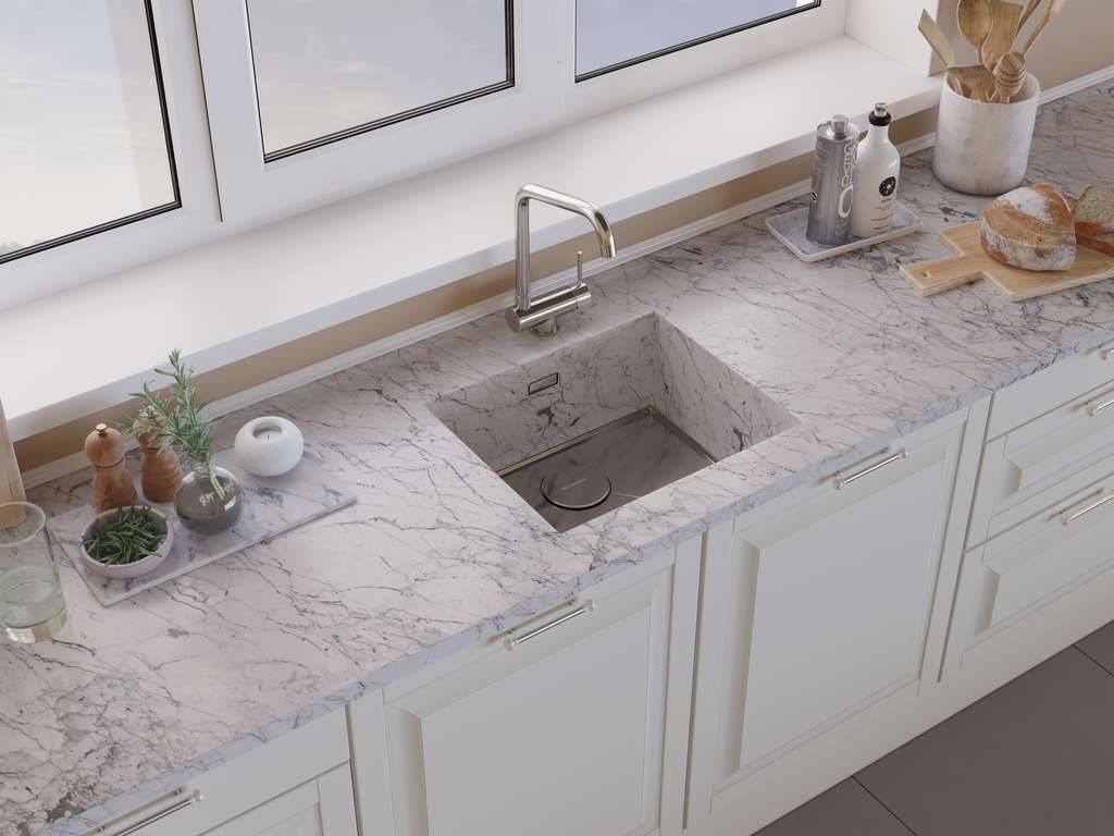 - Смеситель можно встроить в мойку любого материала и типа монтажа.
