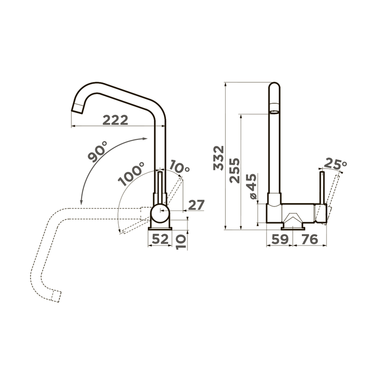 - Cмеситель для установки под окно c высоким поворотным изливом.