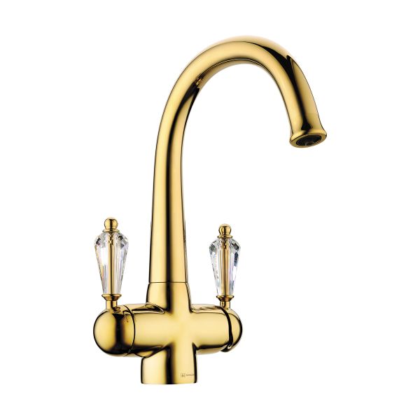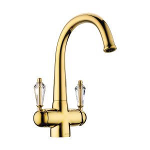 • Ручки смесителя украшены кристаллами Swarovski; • Цвет: 005.Золото • Технология PURE LIFE®: Подключение фильтра для очистки воды. Фильтрованная вода подается по отдельной трубке и не смешивается с водопроводной водой; • Высококачественная латунь сохранит воду чистой и здоровой; • Аэратор произведен из специального полимерного материала, благодаря чему на нем никогда не появится известкового налета и ржавчины; • Коробка внутри проложена поролоном, который обеспечит сохранность изделия при транспортировке; • Полный набор креплений, соединительных шлангов, подробная инструкция и гарантийный талон в комплекте