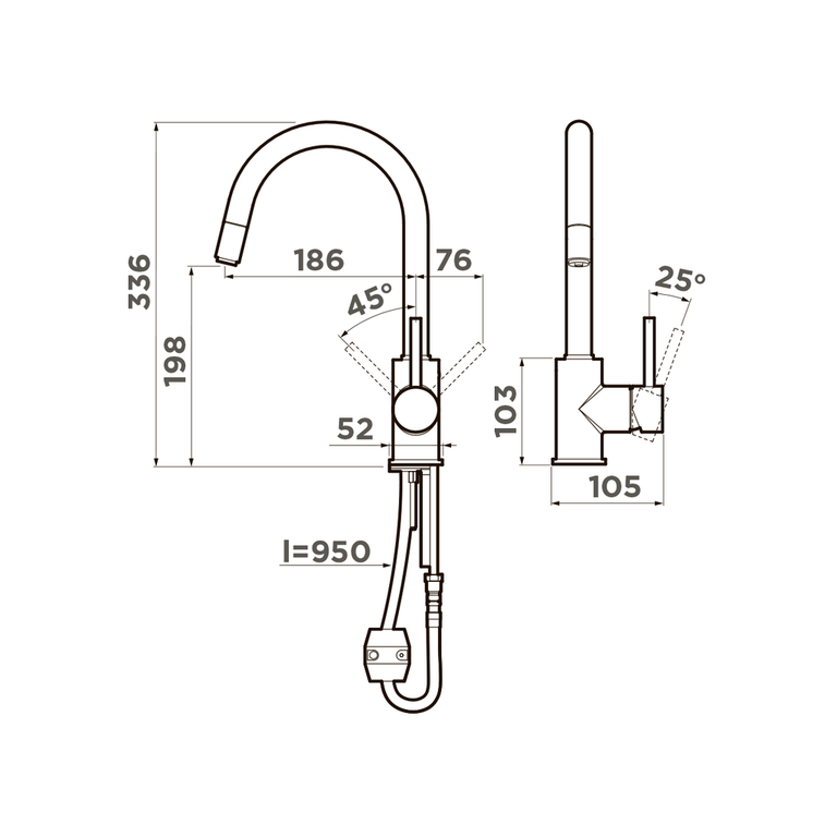 • Практичный однорычажный смеситель выполнен в современном стиле и снабжен высоким поворотным изливом.