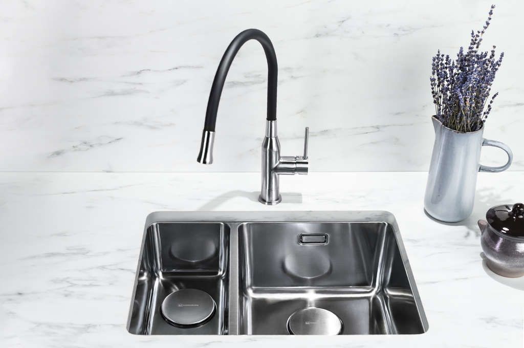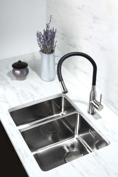 - Смеситель снабжен высоким поворотным шлангом, который при изменении формы всегда остается в устойчивом положении