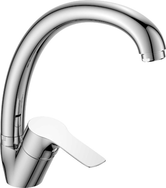 Однорычажный смеситель для кухни из коллекции Dia имеет R-образный поворотный излив, что делает этот кран удобным для глубоких раковин. Система даёт стабильный напор и возможность тонко настраивать температуру воды (керамический картридж). Плавный ход рычага смесителя – одно из главных преимуществ сантехники Orange, которая пользуется огромным спросом и является одним из лучших предложений в своей ценовой категории. Данная модель сочетает в себе надежность, долговечность и оригинальный внешний вид.