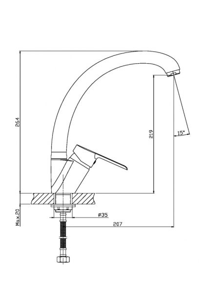 Дугообразный поворотный излив, хромированный корпус и идеально сконструированные подвижные элементы делают этот однорычажный смеситель для кухни из коллекции Prim изюминкой нашего ассортимента. В комплекте гибкая подводка и крепежные элементы, которые обеспечивают быстрый монтаж и надежную фиксацию на любой поверхности. Оснащенный 35-миллиметровым керамическим картриджем, смеситель выдерживает агрессивный режим эксплуатации и способен прослужить долгие годы.