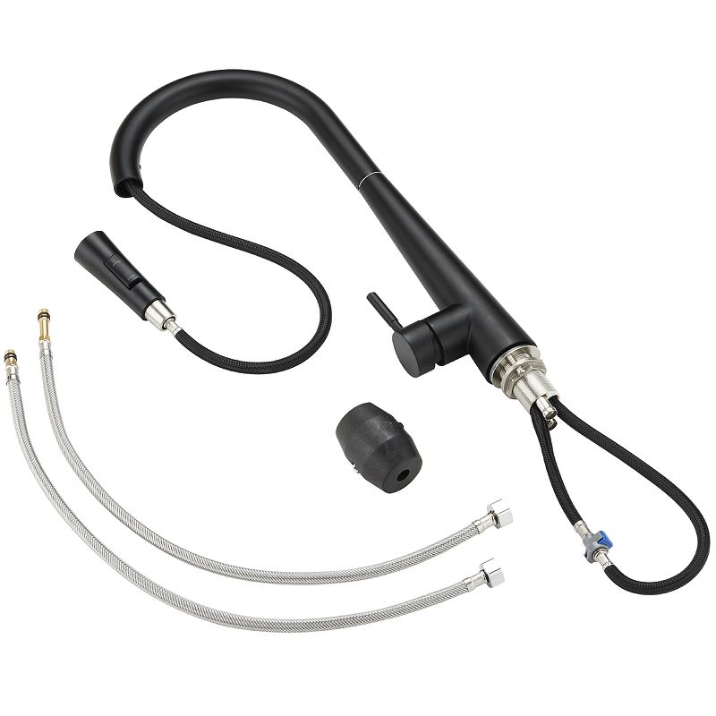 Смеситель Orange Steel для кухонной мойки, с вытяжным изливом, цвет черный, M99-007bОднозахватный смеситель для кухни с поворотным изливом и вытяжным душем Orange Steel украсит современный интерьер. Благодаря фирменному картриджу Orange управление напором и температурой воды легкое и плавное. Корпус выполнен из высококачественной латуни, не подверженной коррозии от длительного контакта с водой. Износостойкое покрытие в цвете матовый черный нанесено методом порошковой окраски с многоступенчатой системой подготовки и температурной обработкой. Особенностью данной модели является наличие вытяжного излива (650 мм), что упростит мытье посуды и гигиеническую уборку мойки - 2 режима струи.Комплектация: смеситель, набор креплений, гибкая подводка, инструкция