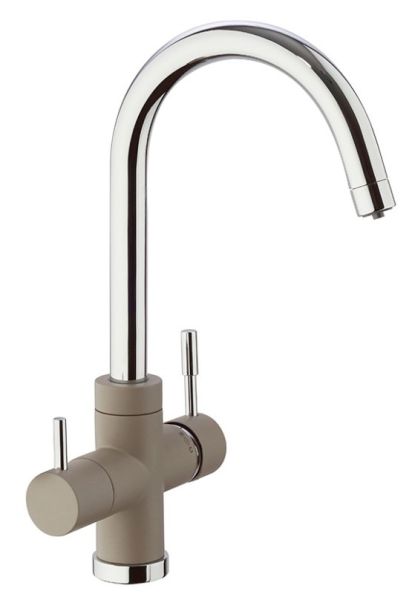 Оптимизируем мокрую зону на кухне со смесителем PAINI COX на 3 воды! Однорычажный смеситель классической формы, но с одной важной деталью: фильтр для воды подключается прямо к смесителю. Легкий монтаж без дополнительных отверстий в столешнице, теперь для доступа к питьевой воде нужно просто повернуть рычаг на корпусе смесителя. Смеситель представлен в необычных цветах, что дает простор творчеству и позволяет сочетать его с мойками и кухонной мебелью разных фактур и материалов.Разнообразие цветаТри варианта бежевого цвета: сахара, бежевый с вкраплениями (гранит) и нежный трюфель, а также белый с вкраплениями (гранит) и комбинация черного и хромого цветов в корпусе смесителя. Теперь точно получится попасть в цвет столешницы и/или цвет мойки либо создать контрастные сочетания. Все варианты покрытия, включая покрытие под камень, выполнены по специальной технологии, сохраняющей цвет и фактуру надолго и облегчающей уход за смесителем.3 воды в одном корпусеПодключение фильтра для воды прямо к смесителю.Европейское качествоСделано в Италии. Гарантия – 5 лет.Технологии гарантируют долгий срок службыФабрика «Паини» использует только лучшие комплектующие. Аэратор Neoperl наполняет поток воды кислородом, увеличивает напор, экономя воду. Одно движение пальцем для очистки сеточки. Керамический картридж Nuovo Galatron – основа, необходимая для долгой работы смесителя.Легкая уборкаНесколько движений – и готово. Мыльная губка и сухая тряпочка – все, что нужно для уборки.