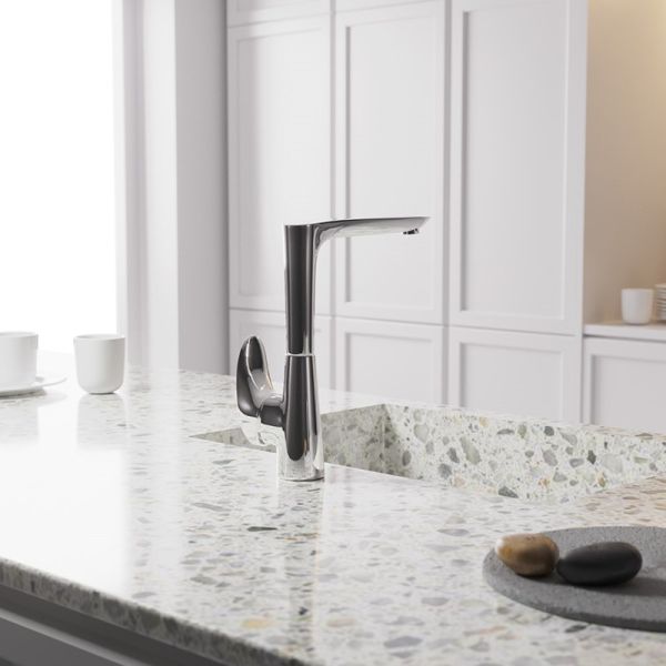 Однорычажный смеситель для кухни - представитель коллекции VERONA, элегантный обтекаемый дизайн которой рожден в Италии. Благодаря высокому корпусу и поворотному изливу этот смеситель открывает больше функциональных возможностей для использования, позволяя менять направление потока воды, использовать глубокую посуду. Смеситель VERONA отлично подойдет для кухонь различных размеров и стилей, например, классика, модерн или эко-стиль.