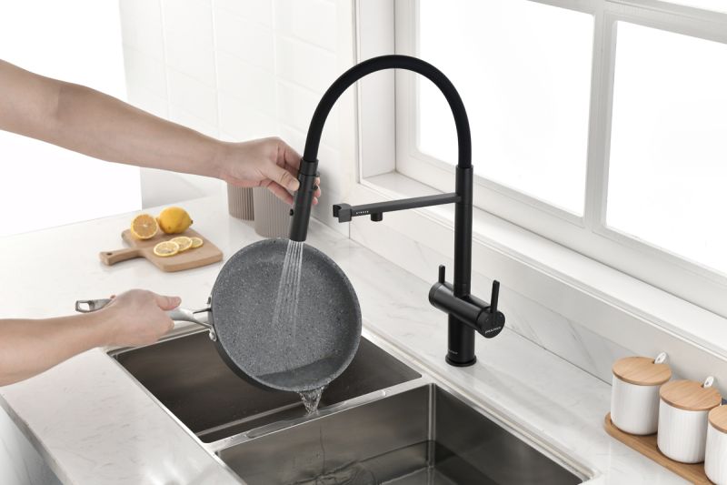 Смеситель для кухни, под фильтр, с гибким изливом, артикул Gr213188-401Входит в премиальную серию кухонных смесителей STÄRKE.