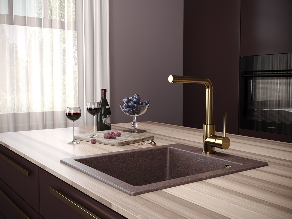 Смеситель для кухни Honner, с поворотным аэратором., артикул Ho212018-GВысококачественная латунь