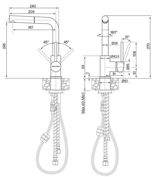 Смеситель для кухни с выдвижным шлангом, Ka214311-310Изготовлен из высококачественной латуни, которая отвечает высочайшим европейским стандартам качества, не содержит свинца, не разрушается со временем и безопасна для здоровья.Вытяжной шланг