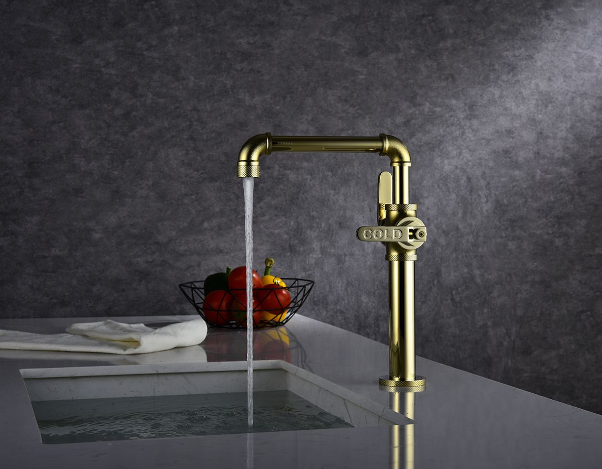 Смеситель для кухни, артикул Lo226006-GВходит в премиальную серию кухонных смесителей STÄRKE.Стильная, надежная и функциональная модель создана специально для интерьеров в стиле лофт, минимализм и hi-tech. Дизайн Loft универсален. Смеситель может быть установлен как на кухне, так и в ванной комнате.