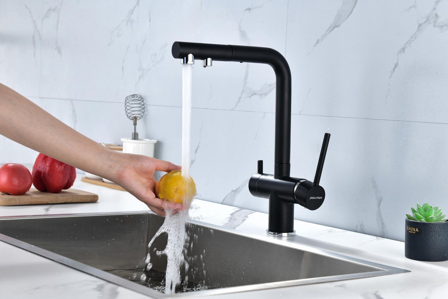 Смеситель для кухни с выдвижным изливом и возможностью подключения фильтра питьевой воды, артикул Se213222-401Изготовлен из высококачественной латуни, которая отвечает высочайшим европейским стандартам качества, не содержит свинца, не разрушается со временем и безопасна для здоровья.Смеситель для кухонной мойки SERPENTINE изготовлен из высококачественной латуни в классическом дизайне с изливом Г-образной формы. Излив поворотный на 180. Высота излива – 330 мм.