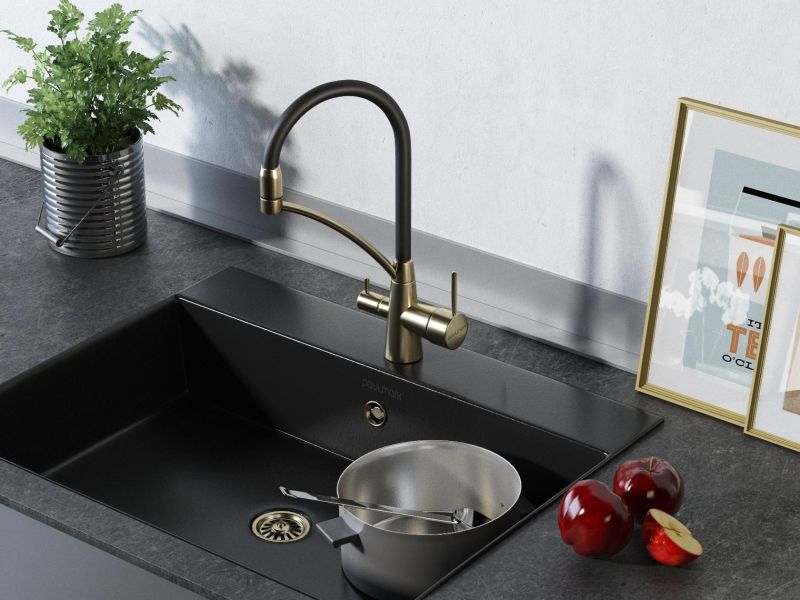 Смеситель под фильтр с гибким изливом, артикул Si213111-BRСмеситель для кухни однорычажный, с возможностью подключения фильтра питьевой воды, эластичный излив, керамический картридж 35 мм.Материал корпуса - латунь высокого качества. Многослойное, стойкое к истиранию покрытие. Долговечный керамический картридж диаметром 35 мм. Эластичный излив. Съемный пластиковый аэратор, который обеспечивает мягкую струю, ровный и экономичный поток воды. Простой монтаж, стандартное подключение.