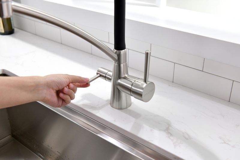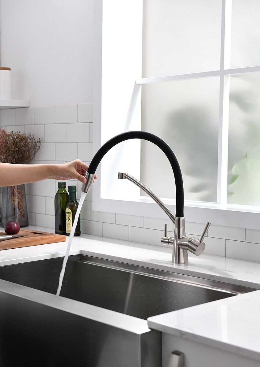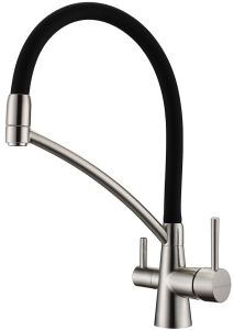 Смеситель под фильтр с гибким изливом, артикул Si213111-NIСмеситель для кухни однорычажный, с возможностью подключения фильтра питьевой воды, эластичный излив, керамический картридж 35 мм.Материал корпуса - латунь высокого качества. Многослойное, стойкое к истиранию покрытие. Долговечный керамический картридж диаметром 35 мм. Эластичный излив. Съемный пластиковый аэратор, который обеспечивает мягкую струю, ровный и экономичный поток воды. Простой монтаж, стандартное подключение.
