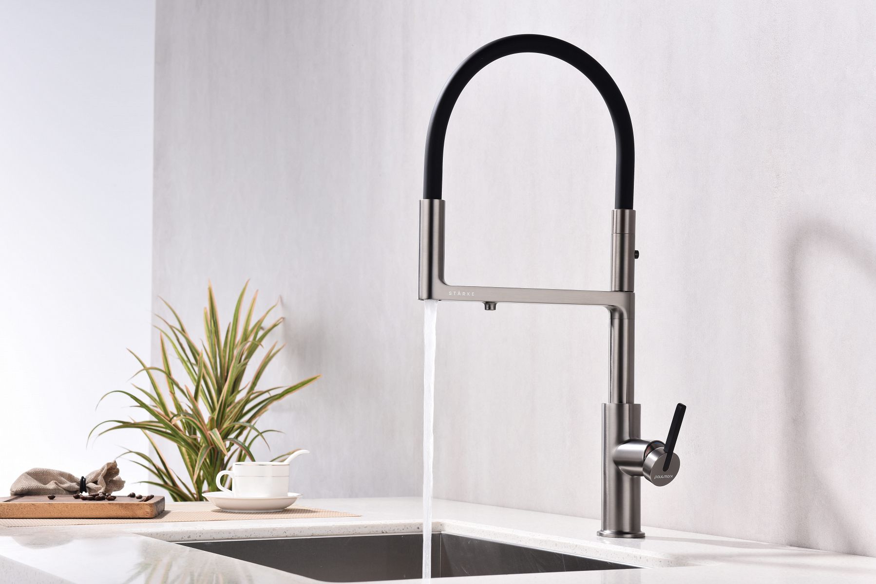 Смеситель для кухни, с гибким изливом, артикул To213402-BИзготовлен из высококачественной латуни, которая отвечает высочайшим европейским стандартам качества, не содержит свинца, не разрушается со временем и безопасна для здоровья.Гибкая подводка 40 см;