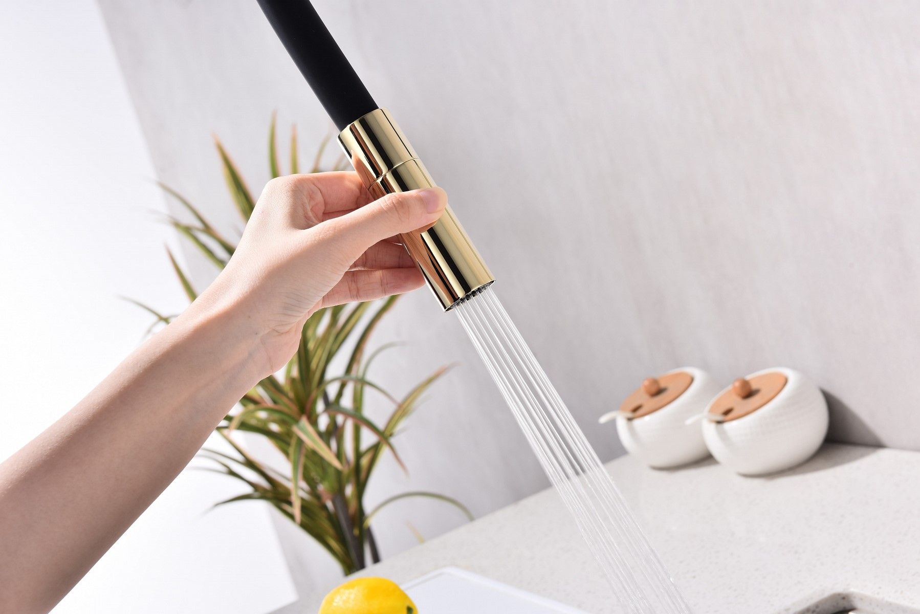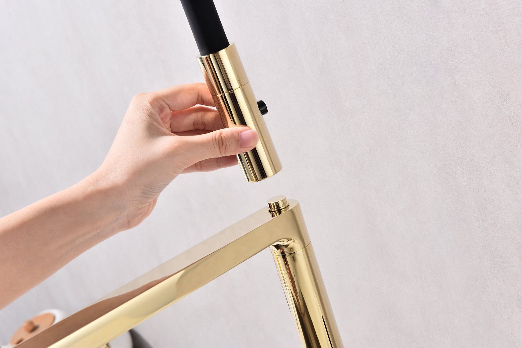 Смеситель для кухни, с гибким изливом, артикул To213402-GИзготовлен из высококачественной латуни, которая отвечает высочайшим европейским стандартам качества, не содержит свинца, не разрушается со временем и безопасна для здоровья.Гибкая подводка 40 см;