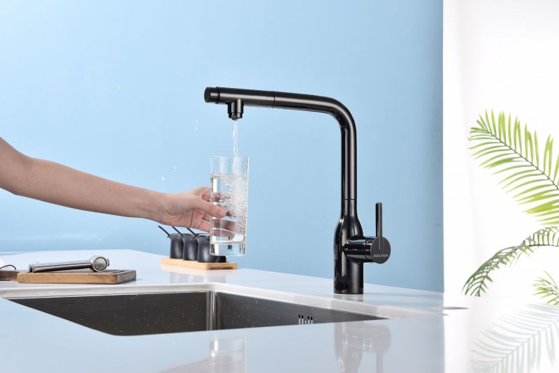 Смеситель VIPER имеет отдельный канал для питьевой воды. Переключение режимов осуществляется с помощью удобной и эргономично расположенной кнопки. Благодаря такому функционалу, потоки воды не смешиваются, а переключение осуществляется максимально комфортно.