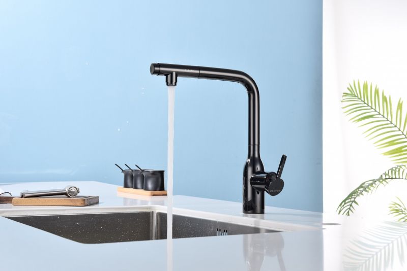 Высокий Г-образный излив с функцией вращения на 360 градусов обеспечивает удобство использования. Выдвижная часть излива способна обеспечить максимально комфортную эксплуатацию и экономный расход воды.