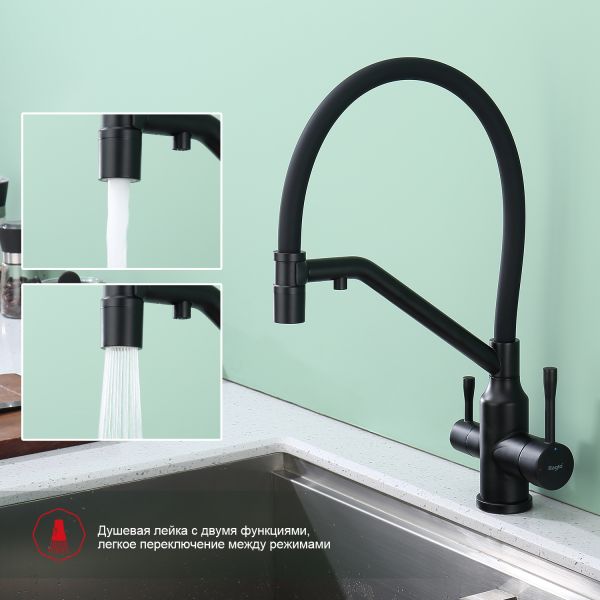 Смеситель для кухни Raglo R81.62.06 с подключением фильтра чёрный купить
