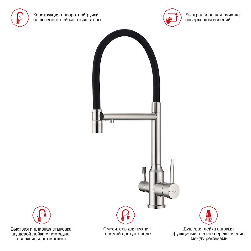 Смеситель для кухни Raglo R81.63.05 с подключением фильтра сатин купить