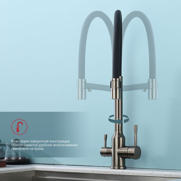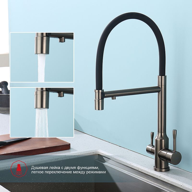 Смеситель для кухни Raglo R81.63.09 с подключением фильтра графит купить