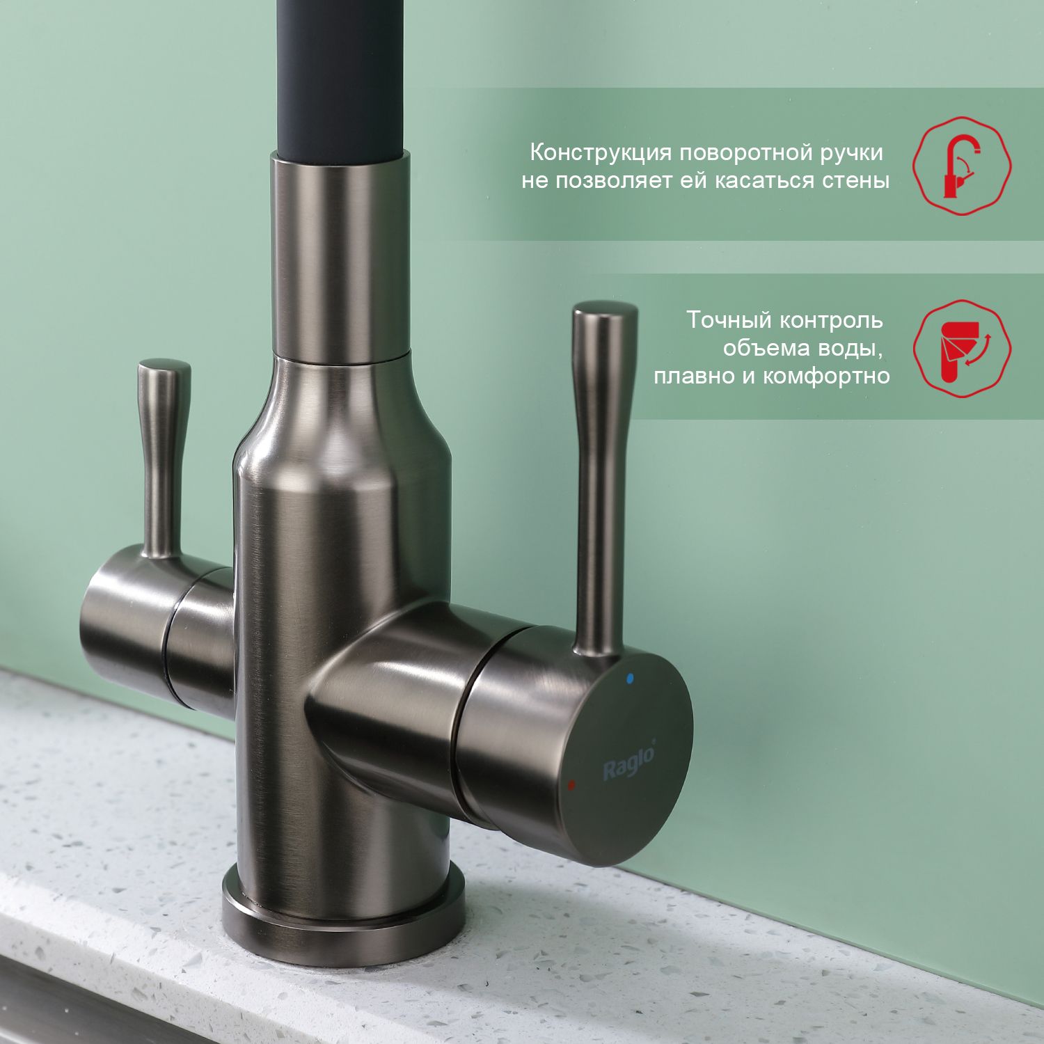 Смеситель для кухни Raglo R81.64.09 с подключением фильтра графит купить