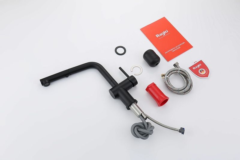 Смеситель для кухни с выдвижным изливом. Кухонные смесители торговой марки RAGLO – это оригинальность и уют для каждого дома. Кран выполнен из высококачественных материалов, что гарантирует его долговечность и надежность. Эта сантехника отличается полезным функционалом, экологичными решениями, оригинальным стилем и легкостью монтажа. Поворотный излив позволяет с большим удобством пользоваться им на кухне. Оснащен гибкой системой подключения, что облегчает его монтаж и установку. Встроенный аэратор эффективно фильтрует примеси и уменьшает шум от импульсов воды. Гладкая внутренняя стенка обеспечивает мягкий поток воды. Высококлассная технология делает поверхность яркой и блестящей. Подходит к кухонным мойкам практически любых размеров и форм.