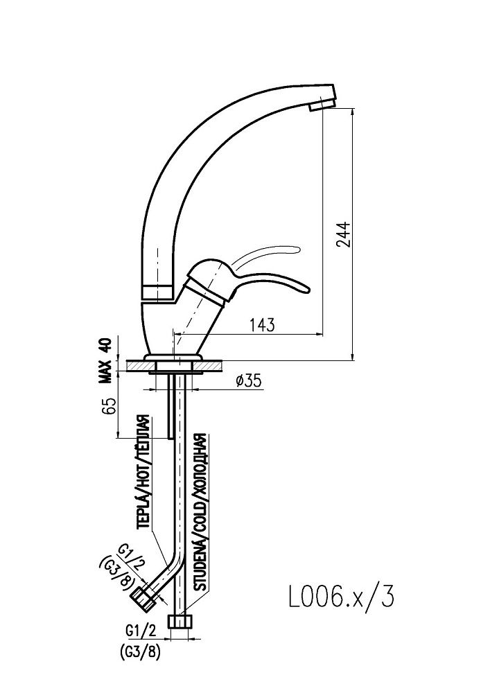 Смеситель для кухни Rav Slezak Labe L006.5/3 хром