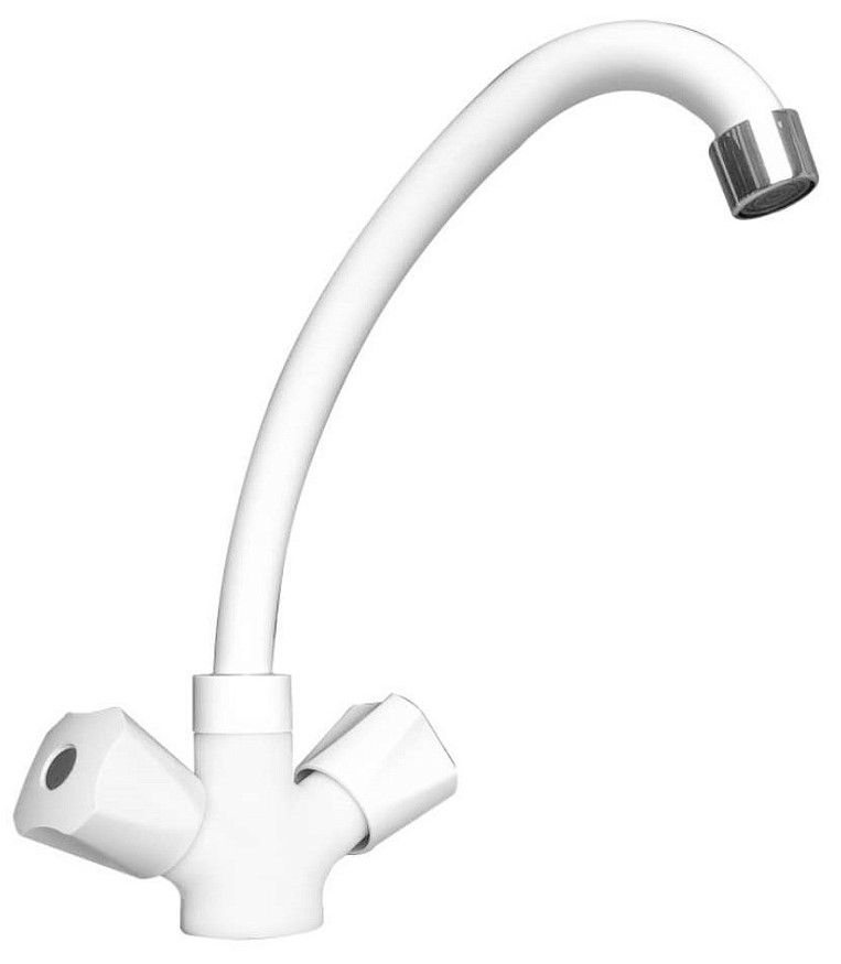 Двухручковый смеситель для кухни с высоким поворотным изливом из ABS пластика. Может использоваться в помещениях со 100% влажностью в отличие от металлических аналогов. Легко монтируется и имеет широкий спектр применения. В комплекте гибкая подводка. Гарантия 1 год.