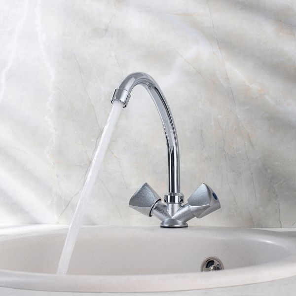 Двуручковый смеситель для кухни из данной серии обладает не отполированным хромированным корпусом и полированным изливом, удобен и практичен в использовании.