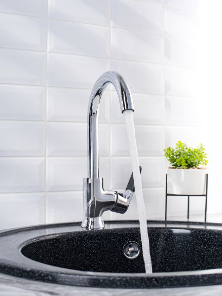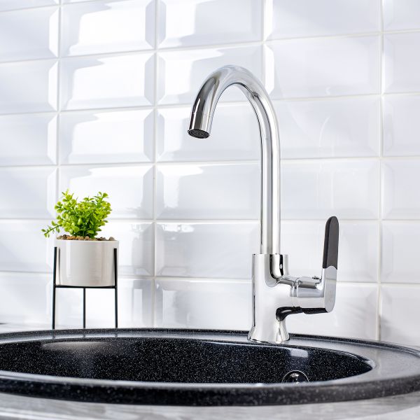 Одноручковый смеситель для кухни с высоким изливом эргономичен в использовании, позволяет максимально точно настроить температуру и напор струи, а также стильно подчеркивает дизайн интерьера.