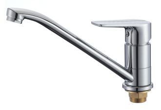 Классический однорычажный смеситель для кухни с длинным изливом, дополненный оригинальным оформлением ручки смесителя, станет функциональным и привлекательным дополнением кухни.