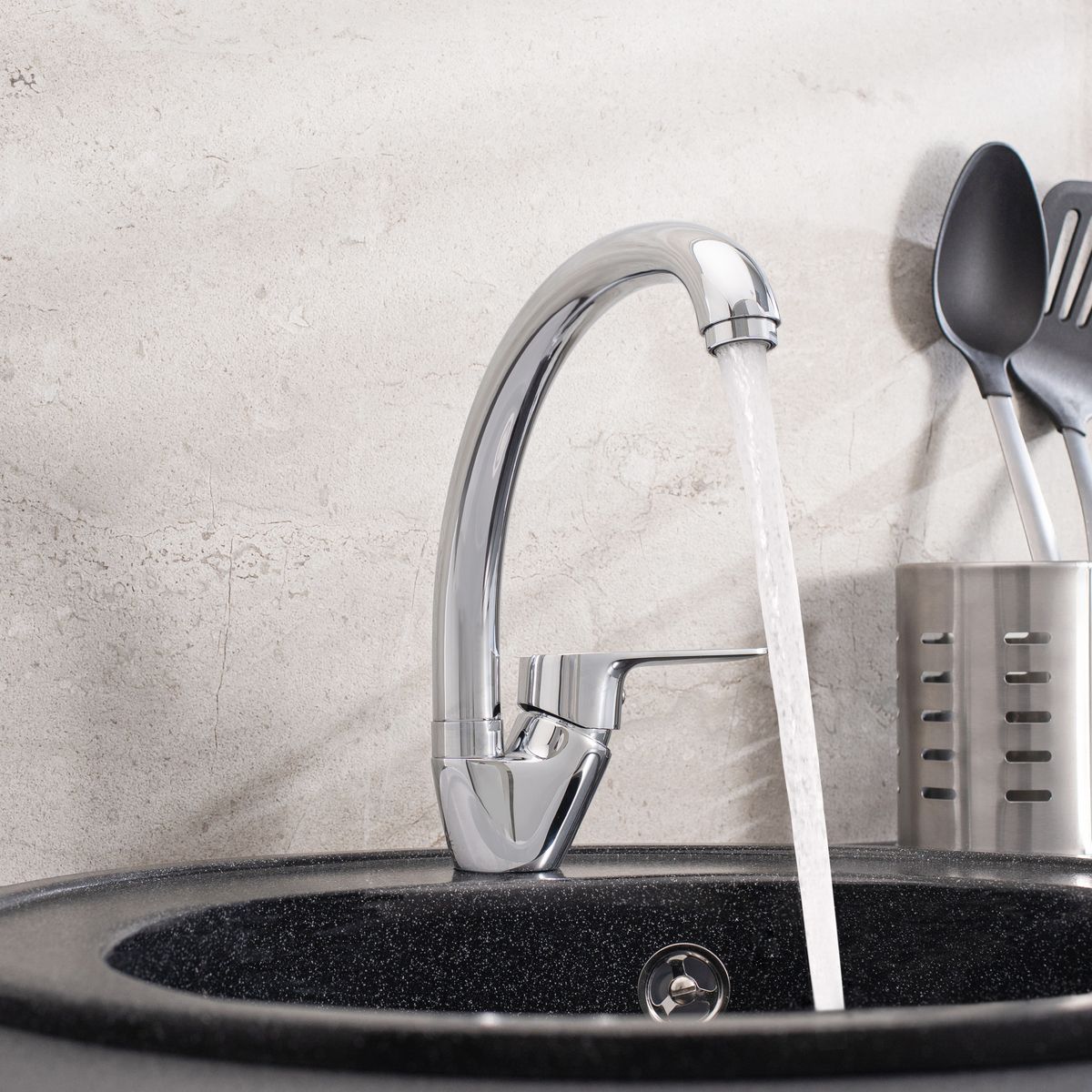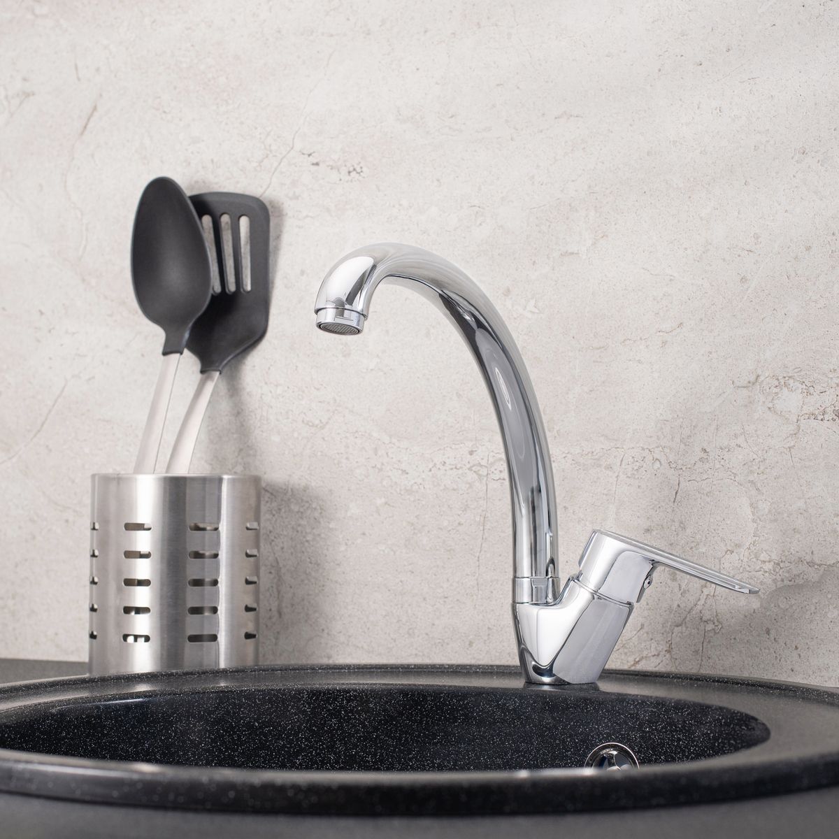 Смеситель для кухни с высоким поворотным изливом