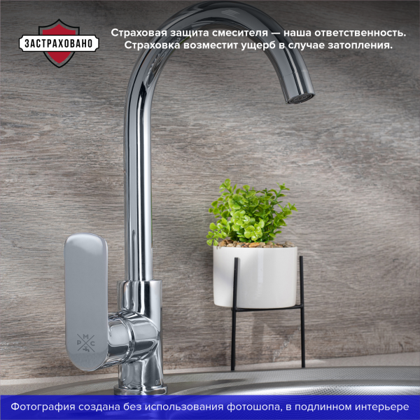 Однорычажный смеситель для кухни с высоким поворотным изливом подойдет как для большой так и для негабаритной кухонной мойки, а современный и лаконичный дизайн дополнит интерьер.