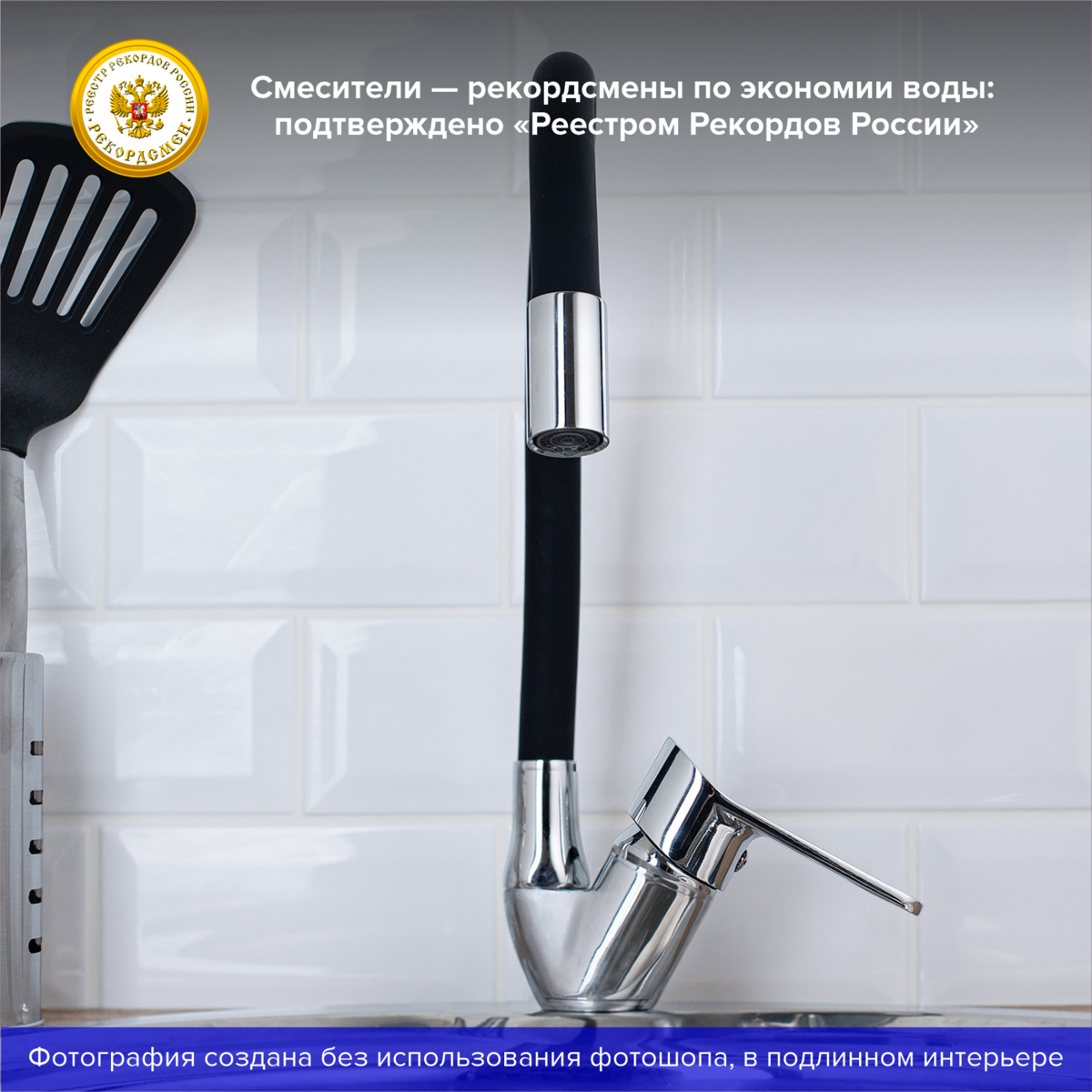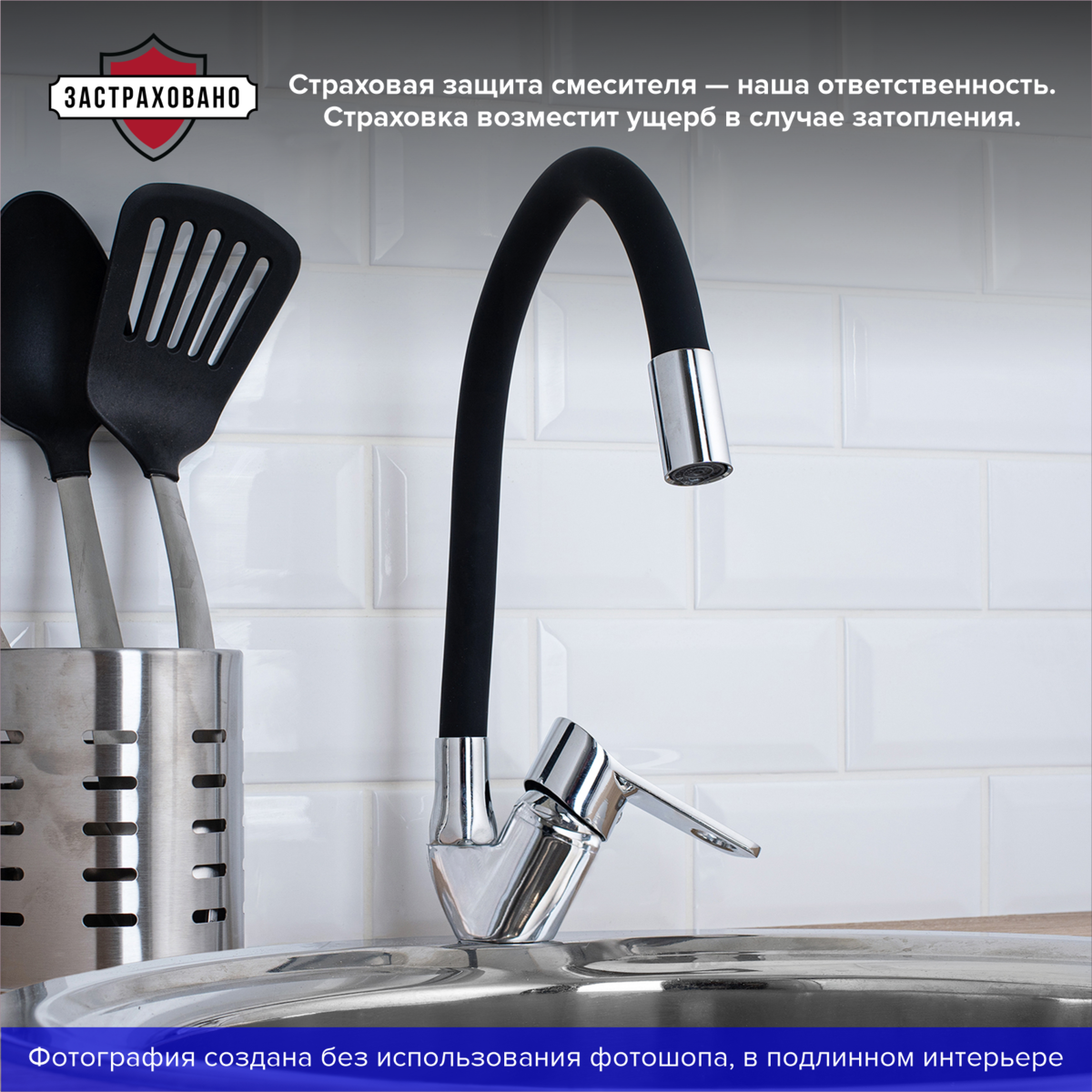 Смеситель для кухни с высоким гибким изливом