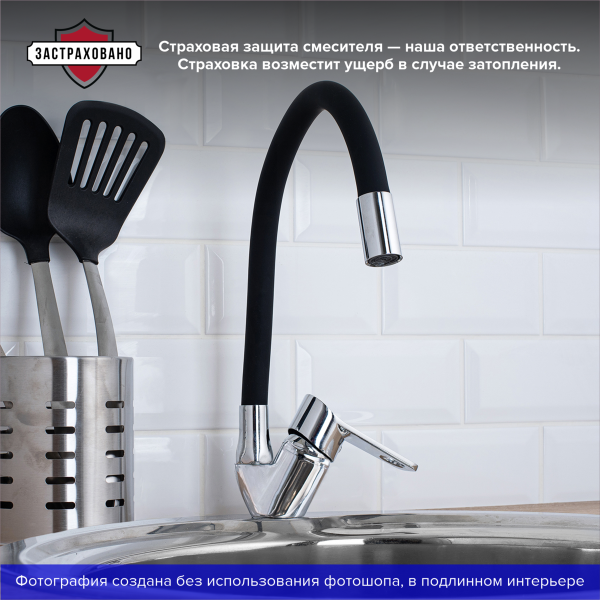 Функциональный однорычажный смеситель для кухни с гибким изливом подойдет для мойки любого размера и стильно дополнит интерьер кухни.