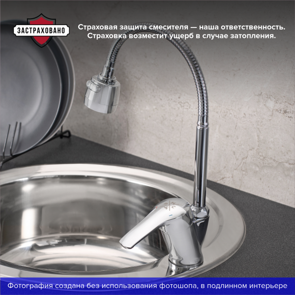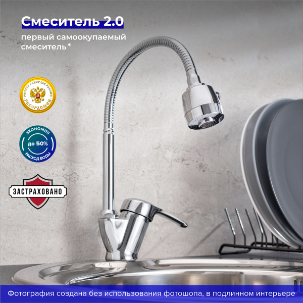 Эргономичный одноручковый смеситель для кухни с высоким гибким изливом удобен в использовании и привлекает внимание современным дизайном, обладает насадкой распылителем с двумя режимами.