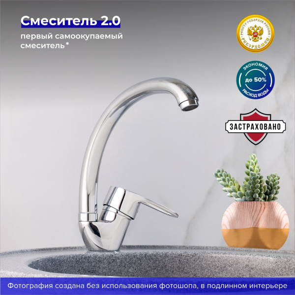Элегантный однорычажный смеситель для кухни с высоким поворотным изливом станет стильным акцентом вашего интерьера.