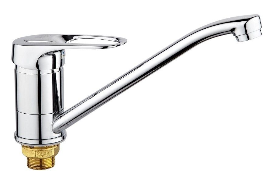 Однорычажный смеситель для кухни с длинным поворотным изливом имеет четкие, плавные линии, удобен в использовании и станет стильным элементом интерьера.