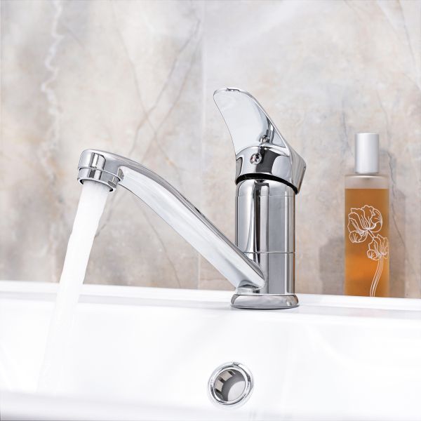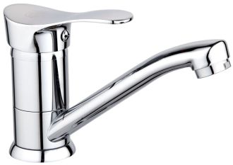 Однорычажный смеситель для кухни с коротким поворотным изливом обладает стильным минималистичным дизайном и гармонично подчеркнет интерьер вашей кухни.