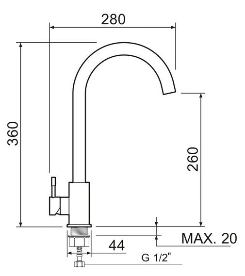 Смеситель для кухни с высоким поворотным изливом